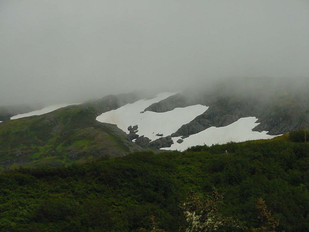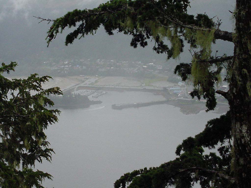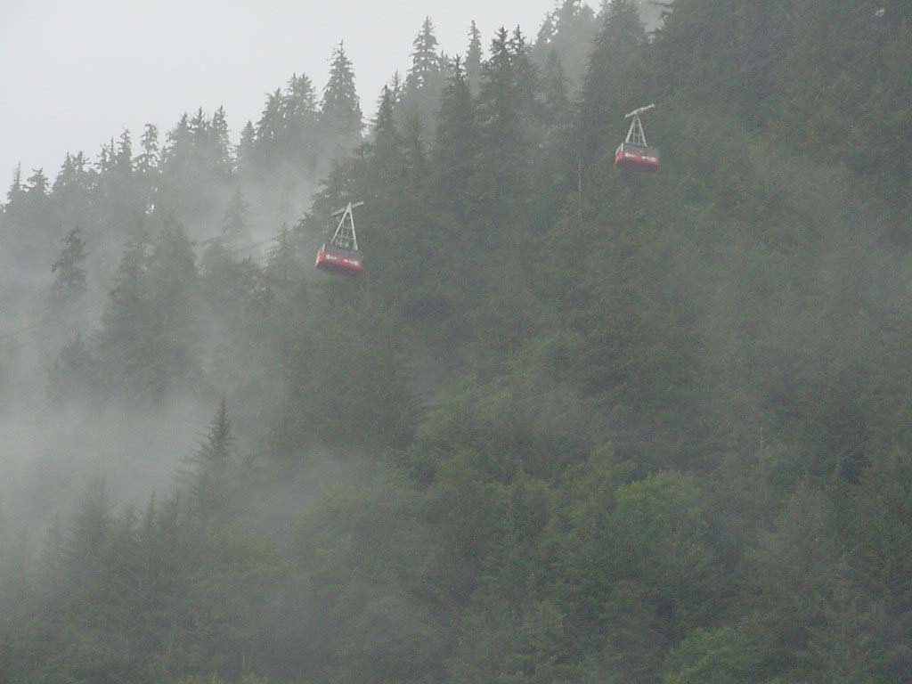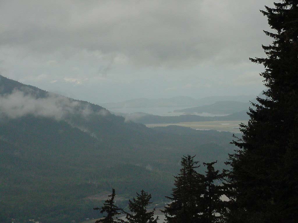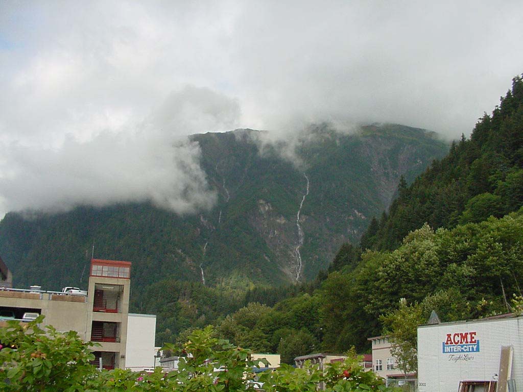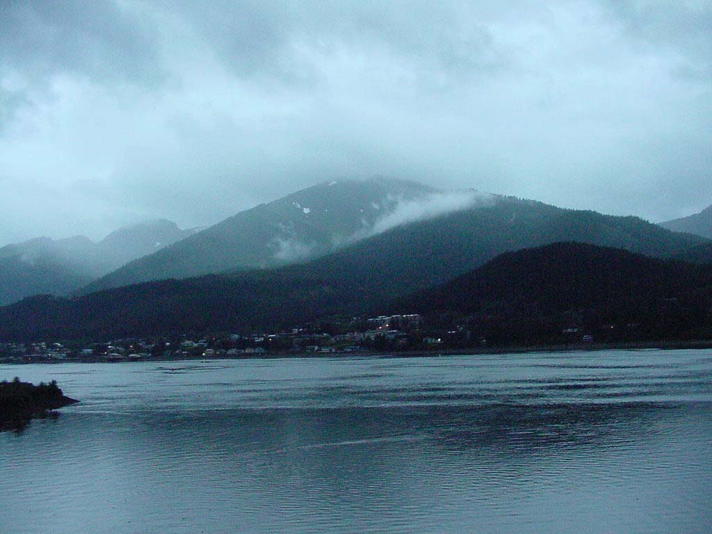 womewhat shrowed in mist are the mountains behind Juneau. |
