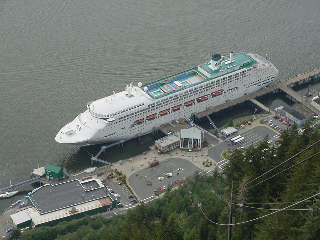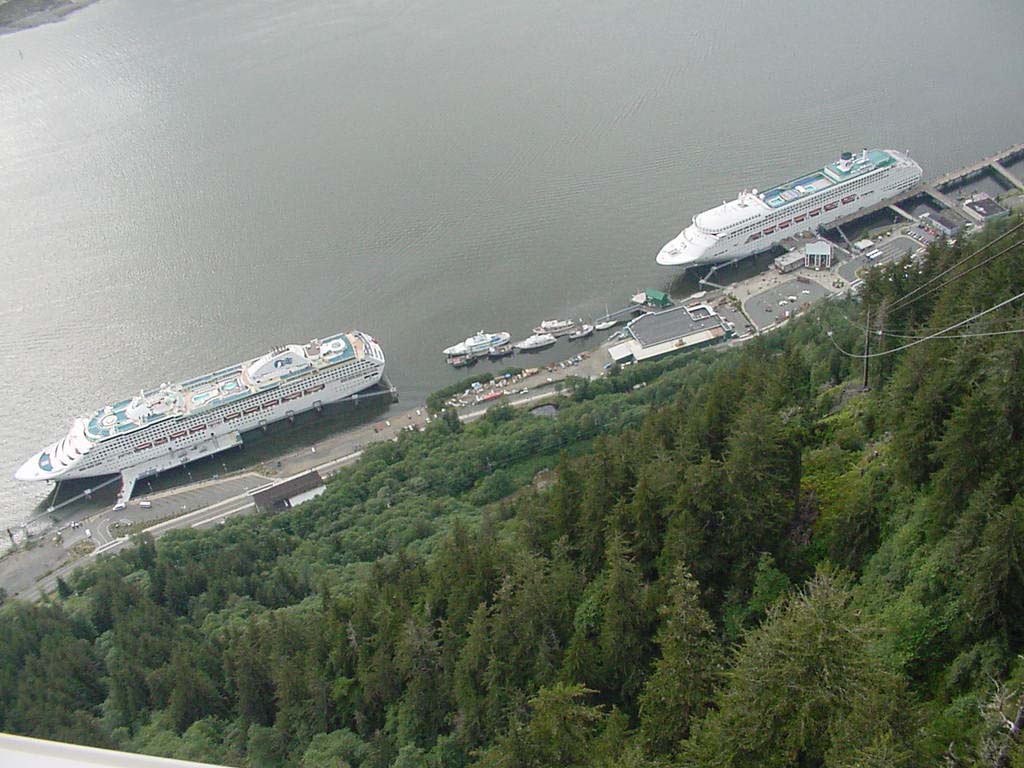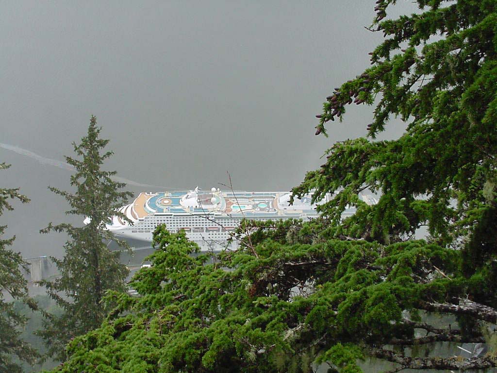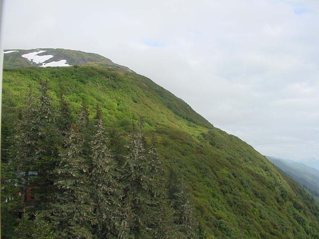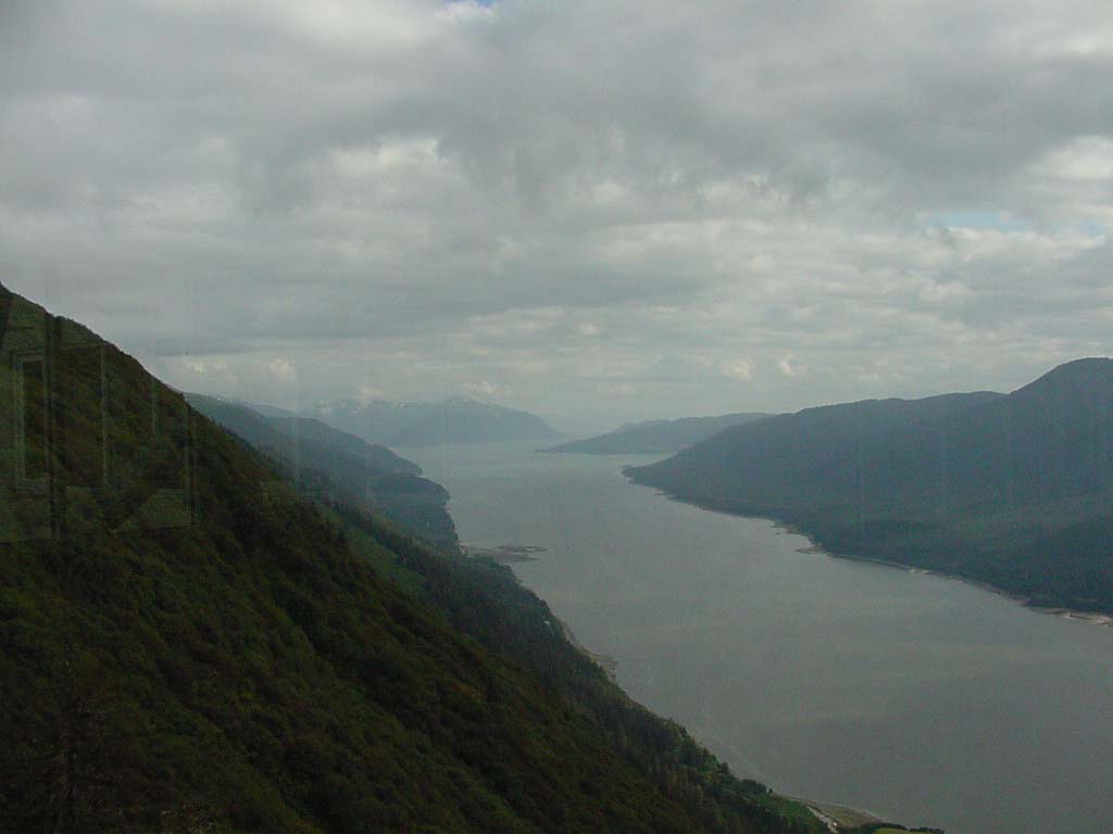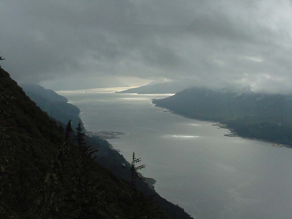 womewhat shrowed in mist are the mountains behind Juneau. |