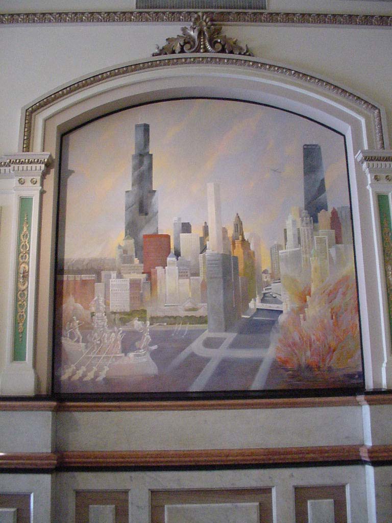 abstract painting about Chicago through it's birth, death and eventual